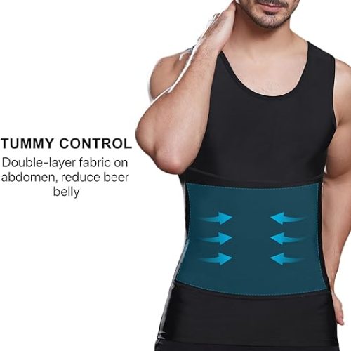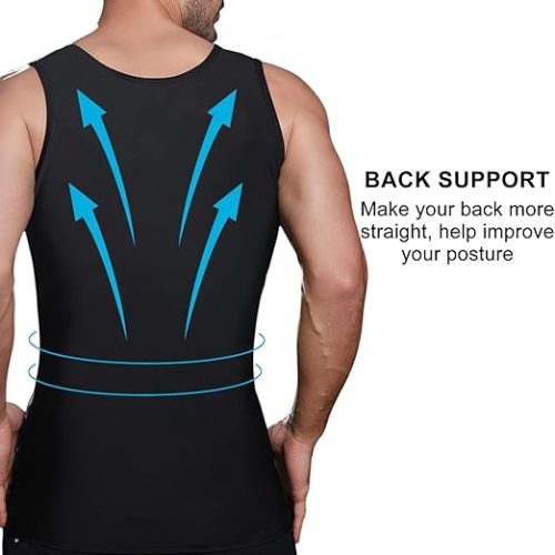 - 【CHANGE IN SECONDS】 This mens gynecomastia compression tank top is designed to reshape the male chest, waist and tummy, reduce the appearance of gynecomastia, hide man boobs and reduce beer belly, straighten the back, provides an immediate slimming look. The slimming design of this shirt allows you to wear it under all types of clothing, such as t-shirts, polos, dress shirts, suits.
