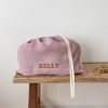Personalized Shoe Bag, Natural Linen Shoe Bag, Custom Name Drawstring Bag in Beige